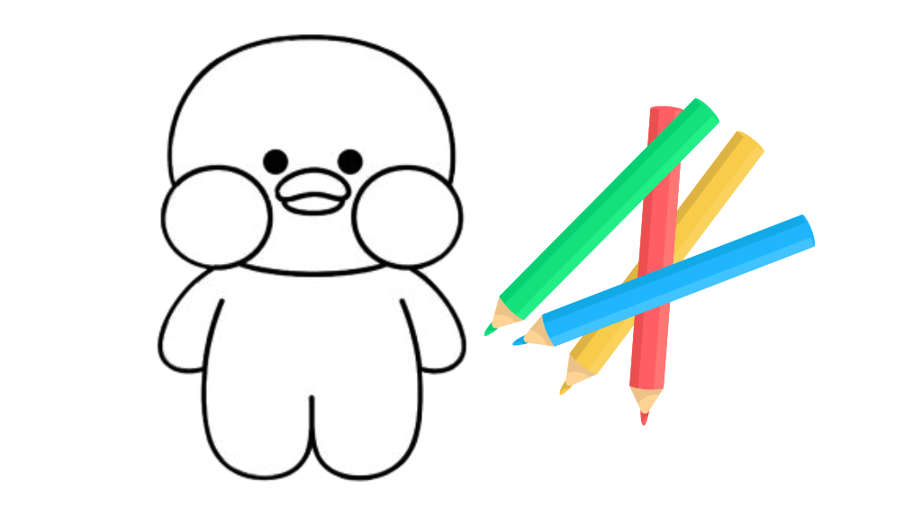 É um patinho minimalista e kawaii, muito usado em desenhos para colorir, adesivos e atividades criativas.